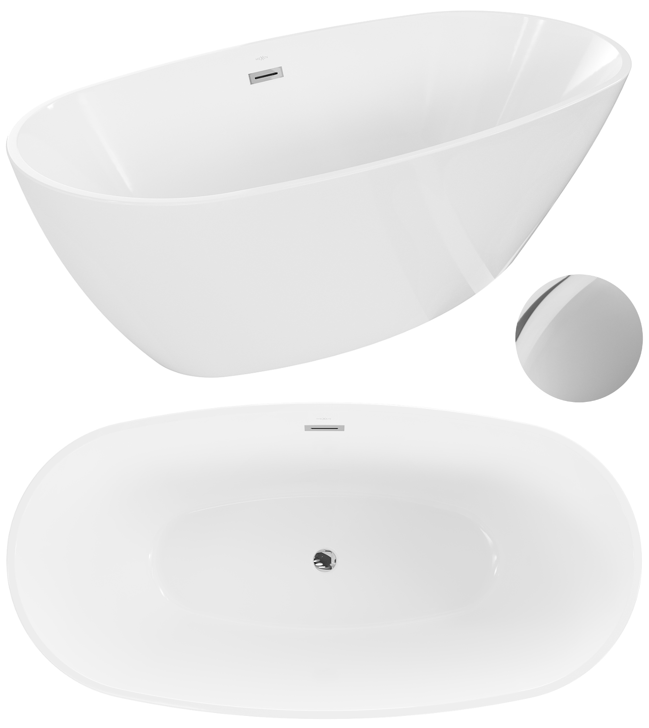 Отдельностоящая ванна Mexen Eris 170 x 85 см, белый, хромированный перелив