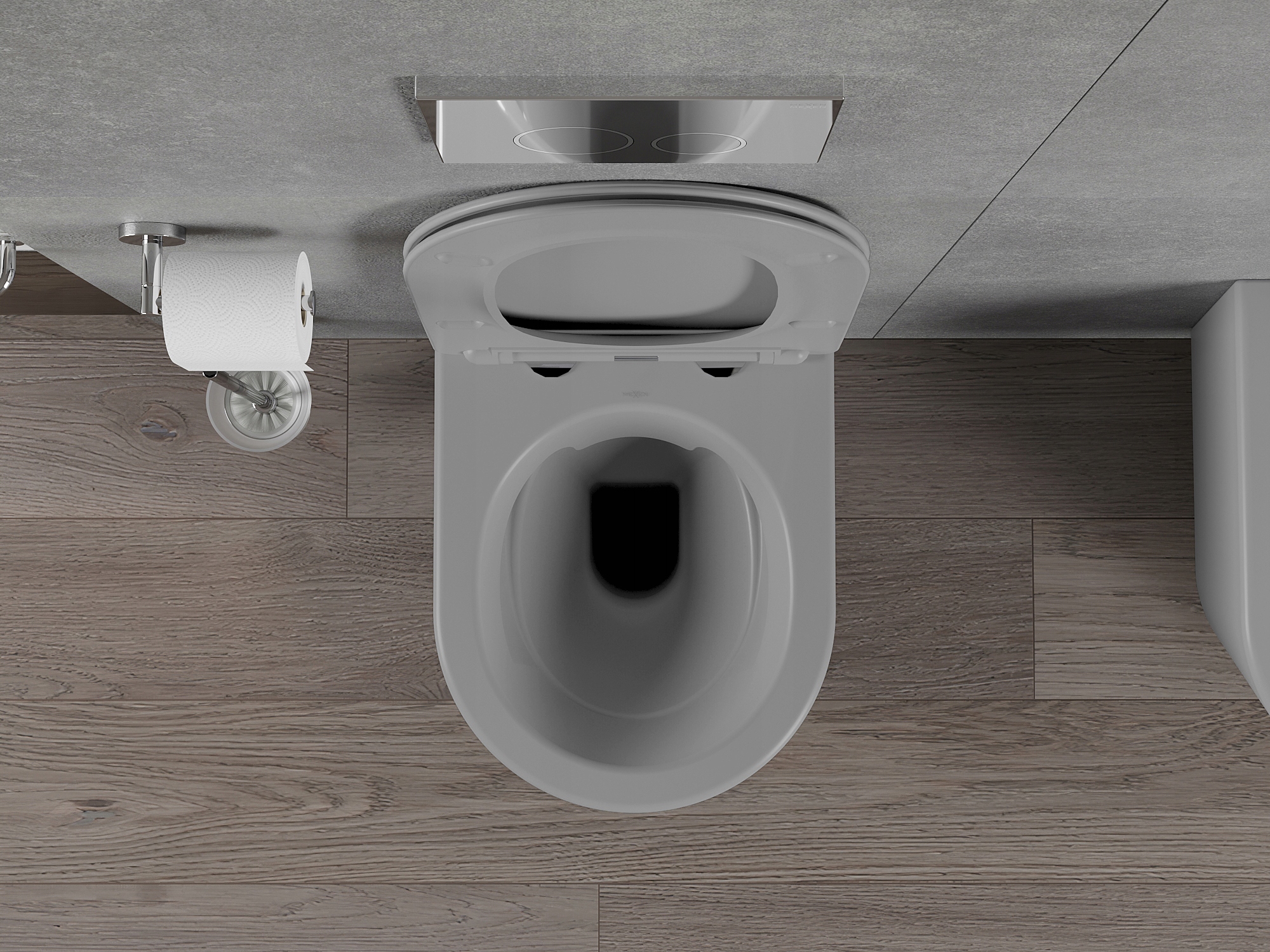 - Технология без оправы обеспечивает свободный поток воды по всей камере, что облегчает поддержание чистоты унитаза.