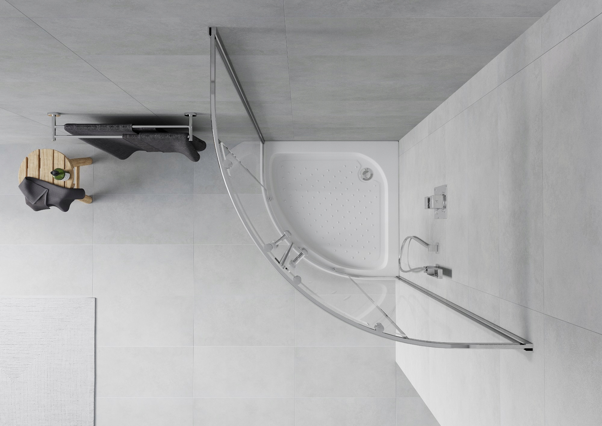 Душевая кабина Mexen Rio полукруглая 70 x 70см, прозрачная, хром + душевой поддон Rio, белый