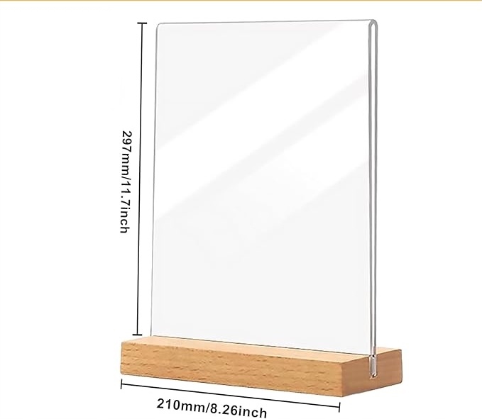 【Двусторонний дисплей, высокая прозрачность】: Благодаря высококачественной двусторонней акриловой подставке держатель знака очень четкий, поэтому вы можете легко разместить свою рекламу и передать сообщение своим клиентам. Настольная подставка формата А4 легко чистится, устойчива к царапинам, имеет четкие и эффективные рекламные изображения (чтобы защитить акрил от царапин, изделие оснащено защитной пленкой. Перед использованием снимите защитную пленку).