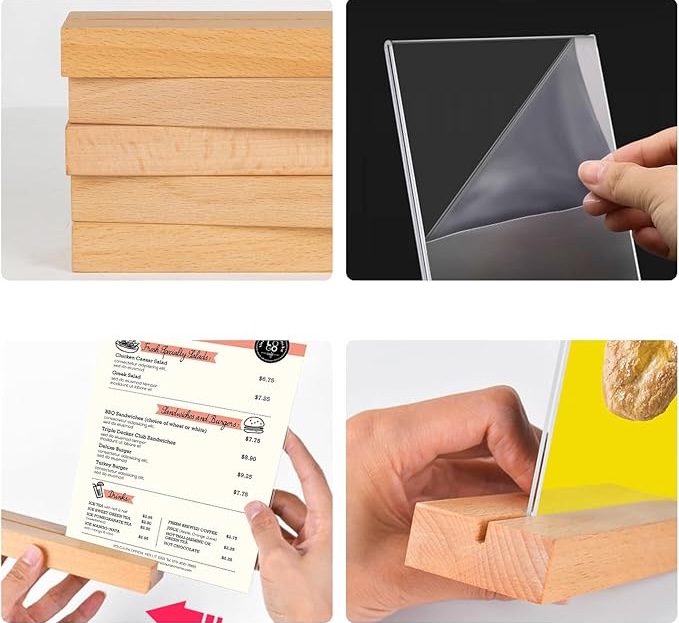 【Множественное использование】: акриловая настольная подставка широко используется в жизни. Табло с ценами подходят для использования в офисах, гостиницах, школах, ресторанах, магазинах, на корпоративных приемах, ярмарках, свадебных мероприятиях и т. д.