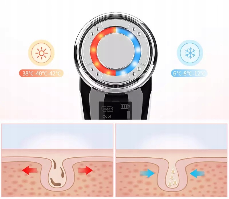 Точная головка может генерировать температуру от 5 до 42 градусов по Цельсию за относительно короткое время, что позволяет легко ухаживать за лицом и всем телом.