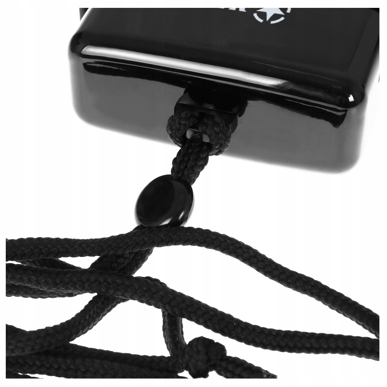 Коробка изготовлена из прочного пластика и оснащена защелкой для закрытия и шнурком со стопором для удобного ношения на шее.
