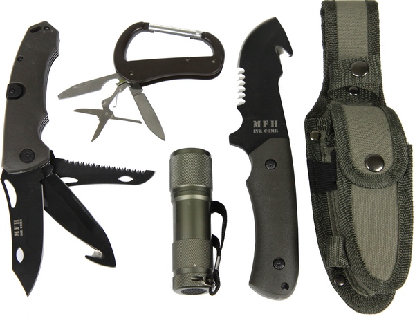 MFH ТАКТИЧЕСКИЙ НОЖ + НАБОР ИНСТРУМЕНТОВ + ФОНАРИК ASG