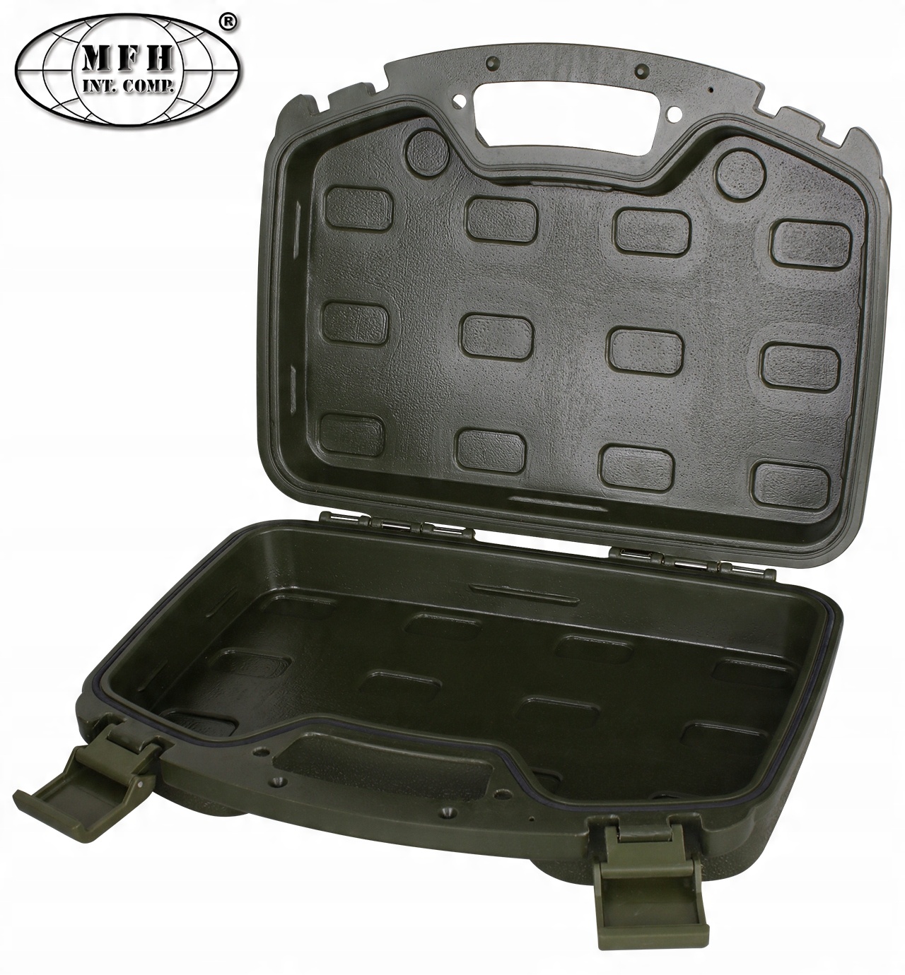 Универсальный короткий оружейный кейс от известной немецкой компании MFH представляет собой прочный контейнер для безопасной переноски оружия, стрелковых принадлежностей, а также другого чувствительного оборудования. к ударам и воздействиям, например, от электронных устройств или оптики.