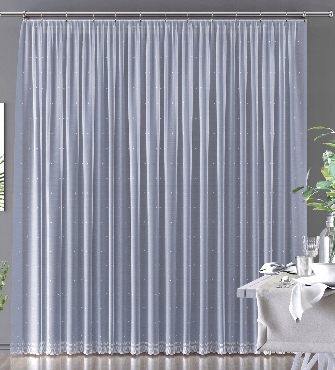 MG CURTAIN DOTS жаккард с блеском 628/124 БЕЛЫЙ высота 180см пол 0,5м