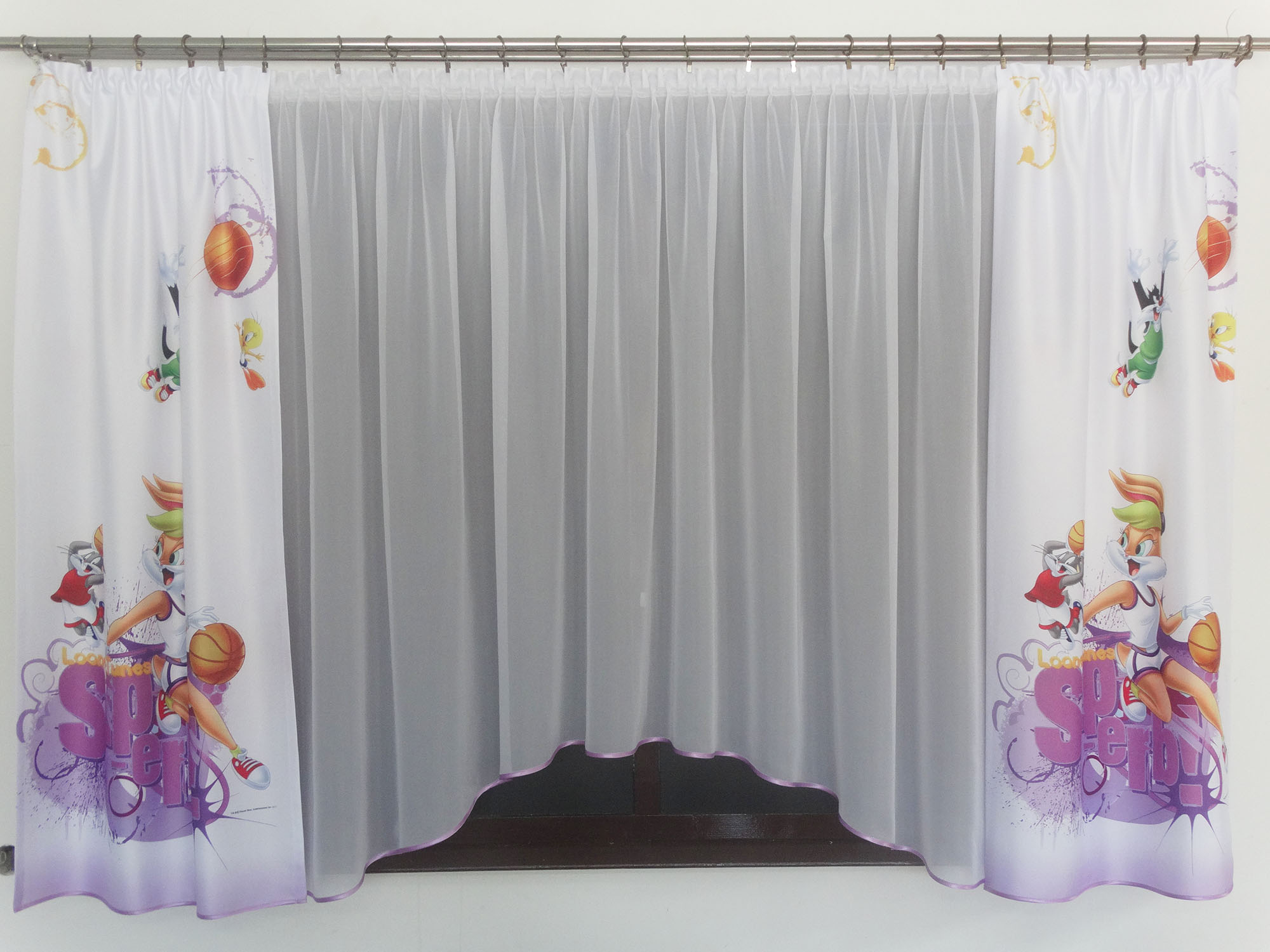 Занавес и шторы сшиты на отдельных лентах