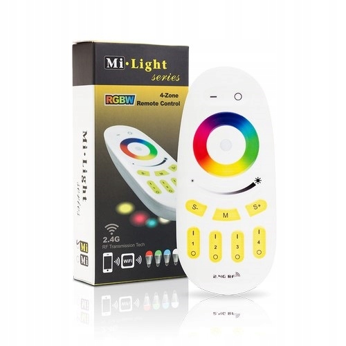 RGB/RGBW Mi-Light FUT096-это интеллектуальный контроллер, который не только позволяет вам контролировать светодиодное освещение с переменным цветом света, но и его деление на 4 индивидуального контроля зоны. На сенсорном пульте дистанционного управления вы найдете 4 кнопки выбора зоны, с помощью которых вы сможете включить или выключить или выключить, а также изменить цвет света, выберите белый цвет и затемните или с помощью света смягчить его свет главного ползунка и кольца, чтобы выбрать RGB