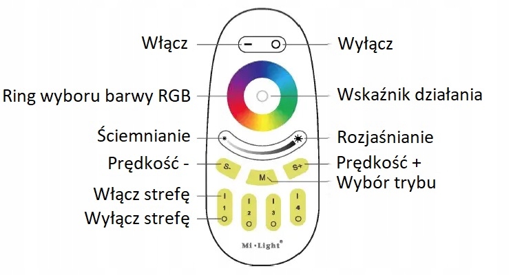 - Индивидуальное управление каждой из 4 зон освещения (вы можете назначить любое количество приемников Mi-света на каждую зону)