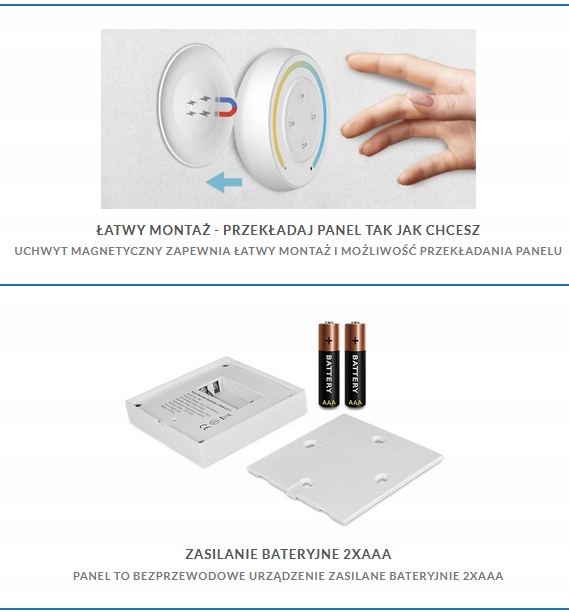 Контроллер RGB+CCT B4 Mi-Light LED — это сенсорная панель управления, которую можно установить в любом месте с помощью магнитного держателя. Это радиоконтроллер, работающий от 2 батареек типа ААА, позволяющий осуществлять беспроводное управление освещением с помощью приемников Mi-Light. Наша сенсорная панель B4 2xAAA будет успешно работать с любым контроллером Mi-Light RGB+CCT, доступным в нашем ассортименте, и подключаться к нему по беспроводной связи через радиосвязь 2,4 ГГц.