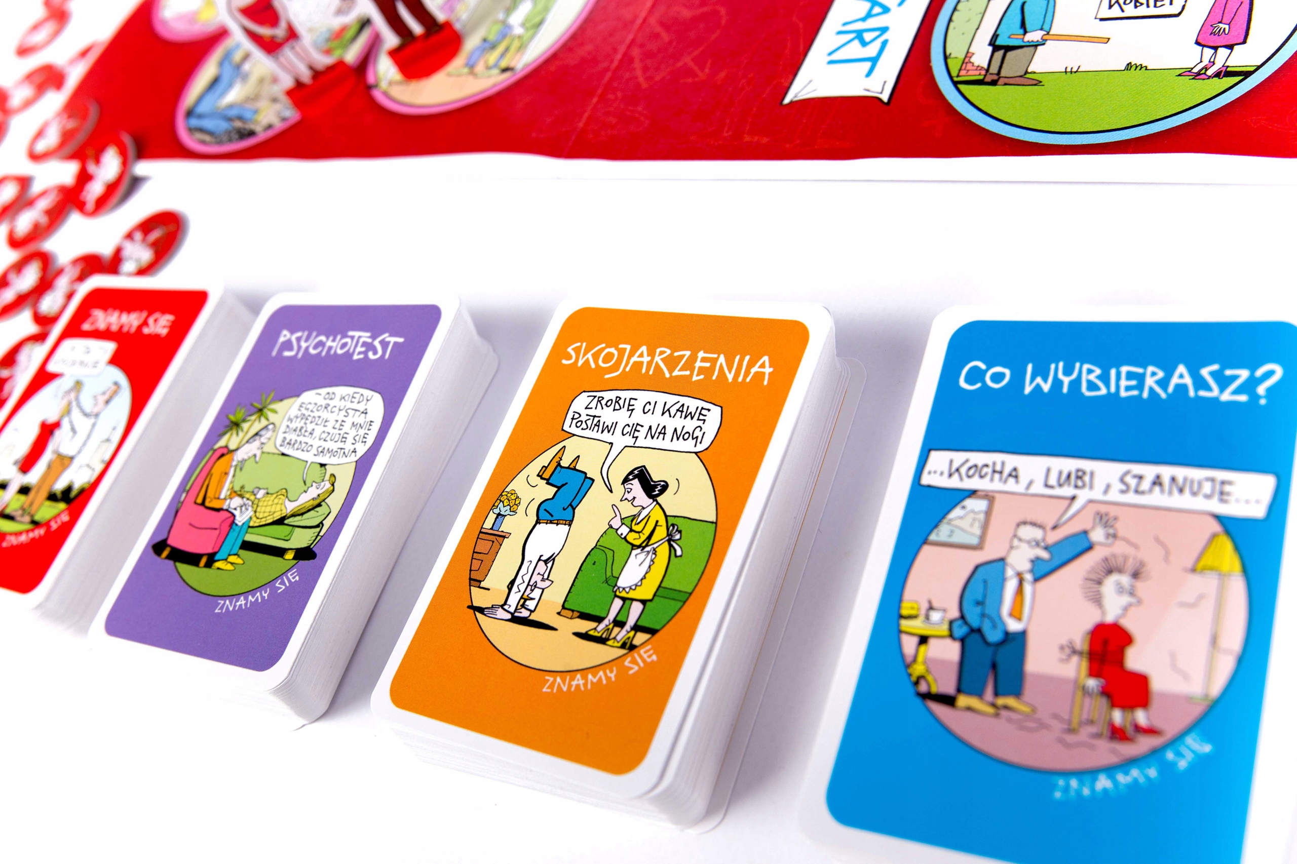 "Мы знаем друг друга" - отличный способ проверить своего партнера - узнать его привычки, ассоциации и скрытые желания . Раскрывать маленькие секреты можно вдвоем или в компании. В игре двустороннее поле, с двумя вариантами игрового процесса в зависимости от количества участников. Вопросы и задания из четырех категорий касаются ситуаций, известных из повседневной жизни, но создатели игры сделали отсылки и к тайным сферам жизни. Основная цель игры — добраться до финиша в кратчайшие сроки и собрать как можно больше жетонов Купидона. Благодаря им вы можете купить у партнера конкретные желания – почесать спину, стаканчик холодного пива или поход по магазинам. Есть за что бороться!