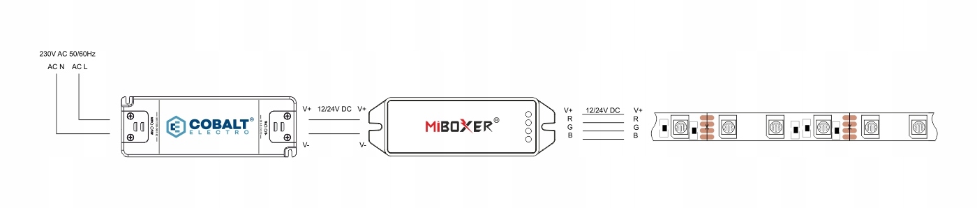 Приемник MiBOXER в сочетании с пультом дистанционного управления MiBOXER — это изделия с интересным и оригинальным методом работы. Приемник подключается к пульту дистанционного управления с помощью радиоволн частотой 2,4 ГГц. Приёмник можно установить на любом этапе сборки светодиодной ленты, поскольку он монтируется между блоком питания и лентой.