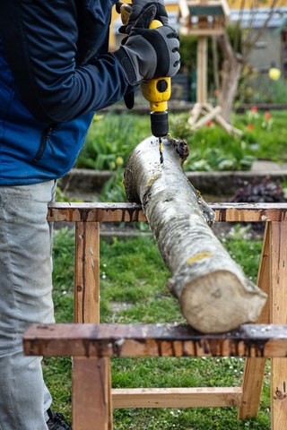 Одной упаковки (20 штук крупных колышков) достаточно для прививки 1-2 деревянных пней. Лучше всего для этой цели подходят свежесрубленные, здоровые стволы лиственных деревьев (хранение не более 3 месяцев), диаметром 8-25 см и длиной 1-1,5 м. Если при хранении древесина значительно высохла , его можно увлажнить путем замачивания или многократного опрыскивания водой.