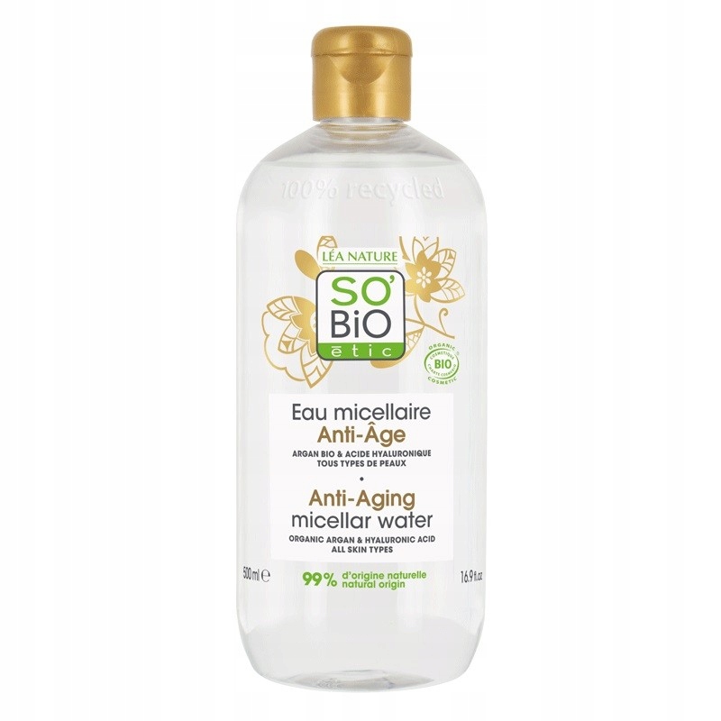 Мицеллярная вода против морщин с аргановым маслом, EcoCert, 500 мл, SO'BiO étic