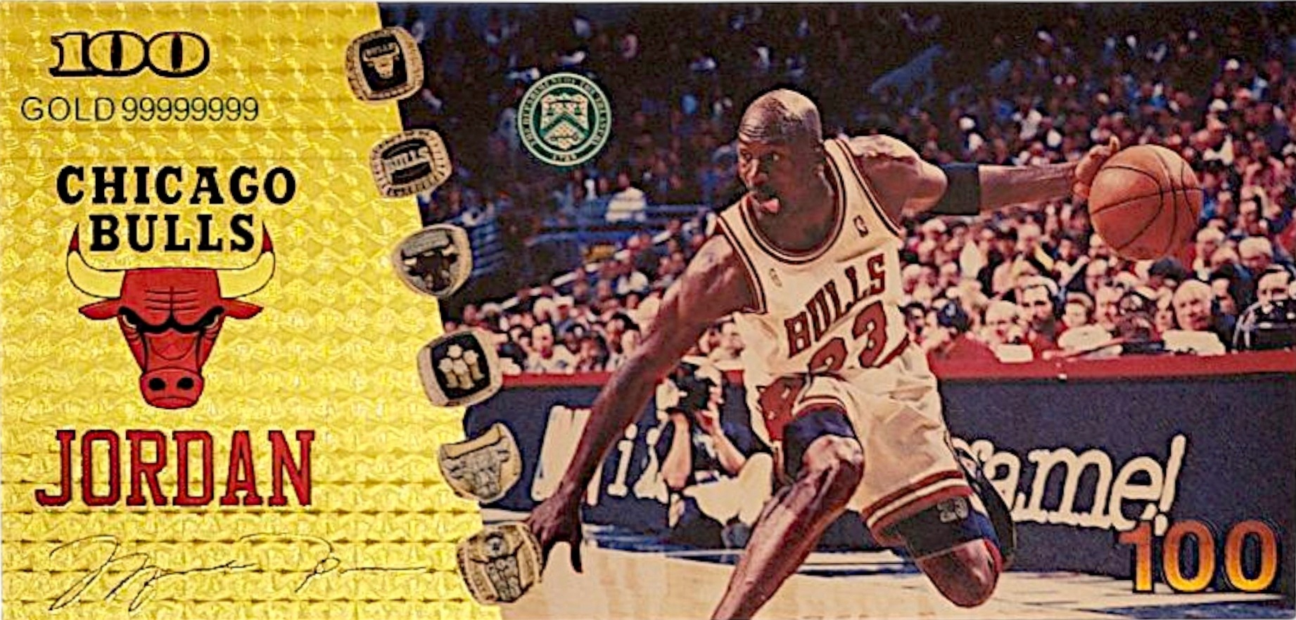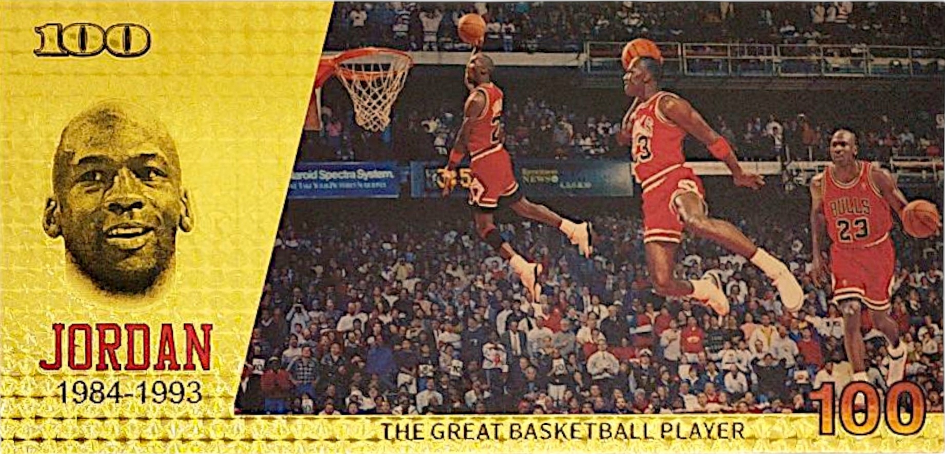 БАНКНОТА МАЙКЛ ДЖОРДАН ПОЗОЛОЧЕННАЯ БАНКНОТА ИЗ ПВХ