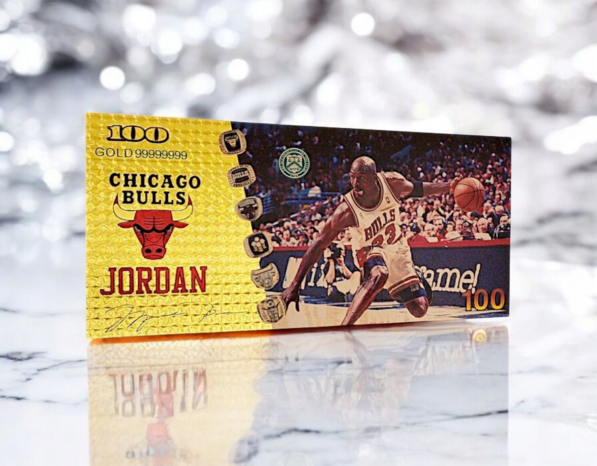 Проявите свое уважение к иконе спорта — Майклу Джордану, шестикратному чемпиону НБА и бесспорному королю баскетбола, который теперь доступен в уникальной коллекционной форме банкноты из ПВХ, покрытой золотой фольгой!