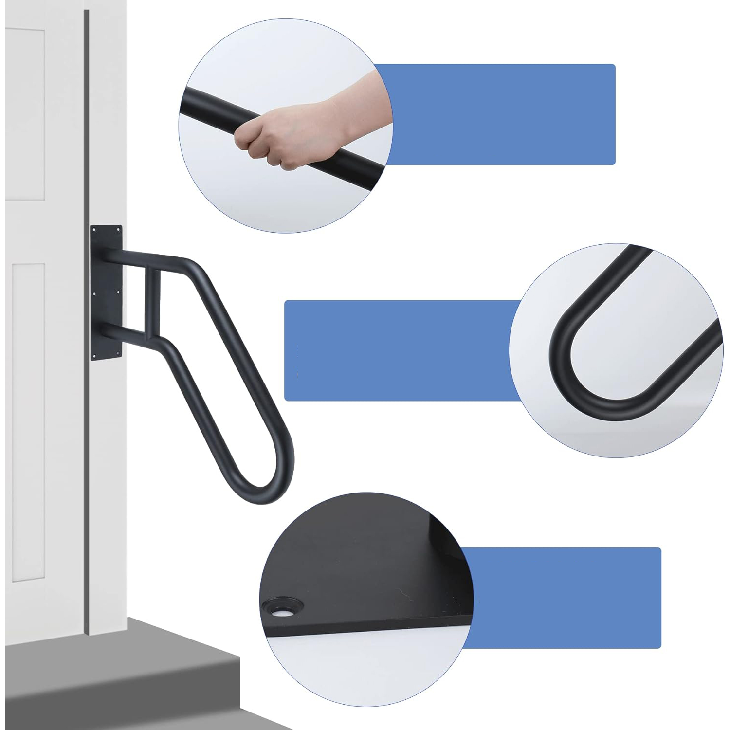 ПРОЧНАЯ ЧЕРНАЯ U-ОБРАЗНАЯ РУЧКА БЕЗОПАСНОСТИ ДЛЯ НАСТЕННЫХ ПЕРИЛ