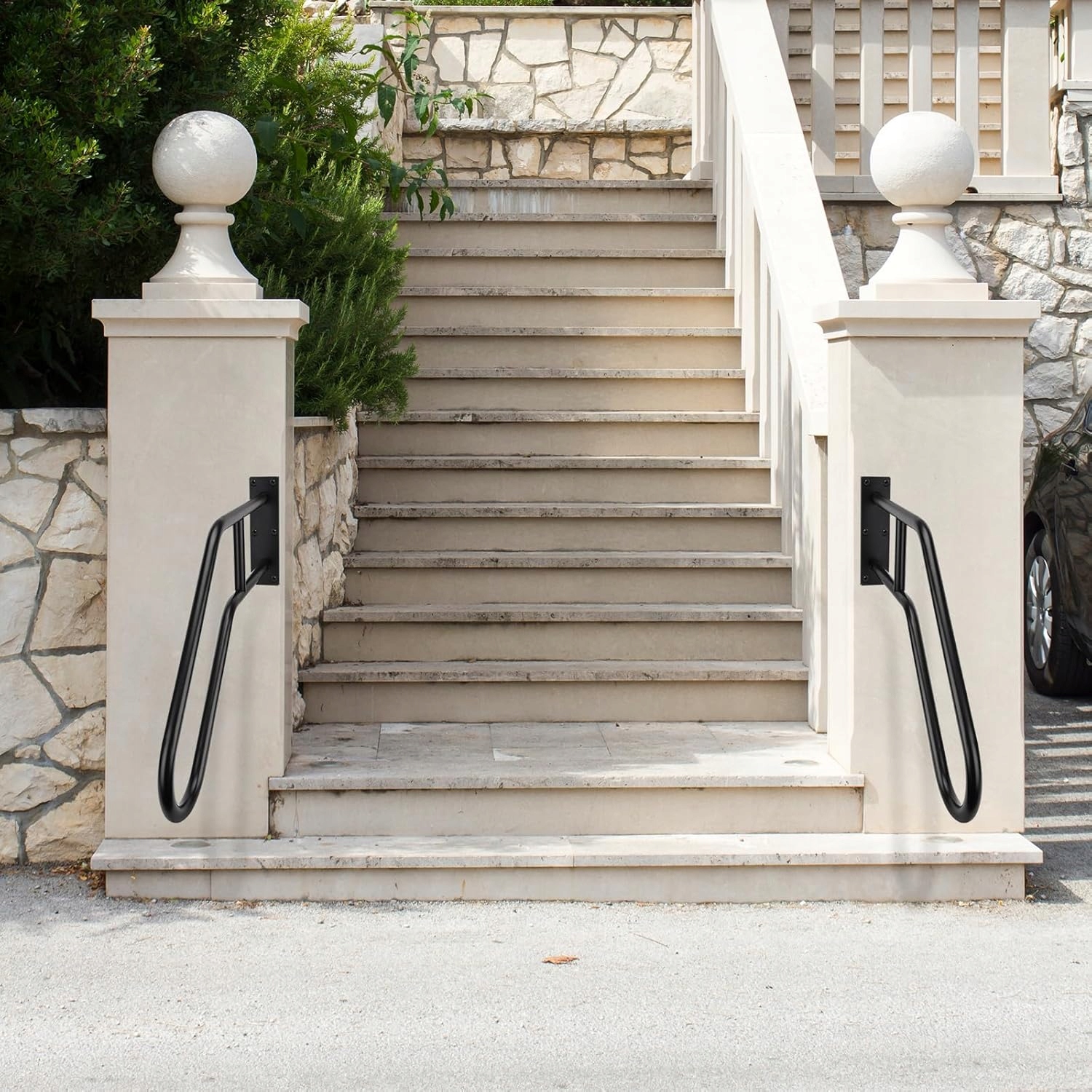 Безопасные лестничные перила: Эти настенные перила изготовлены из прочного, прочного металла, что обеспечивает их устойчивость и устойчивость к деформации. Матово-черное порошковое покрытие обеспечивает долговечность, устойчивость к скольжению и защиту от коррозии и ржавчины. Подходит для любых условий окружающей среды и погодных условий, выдерживает нагрузку до 400 фунтов.