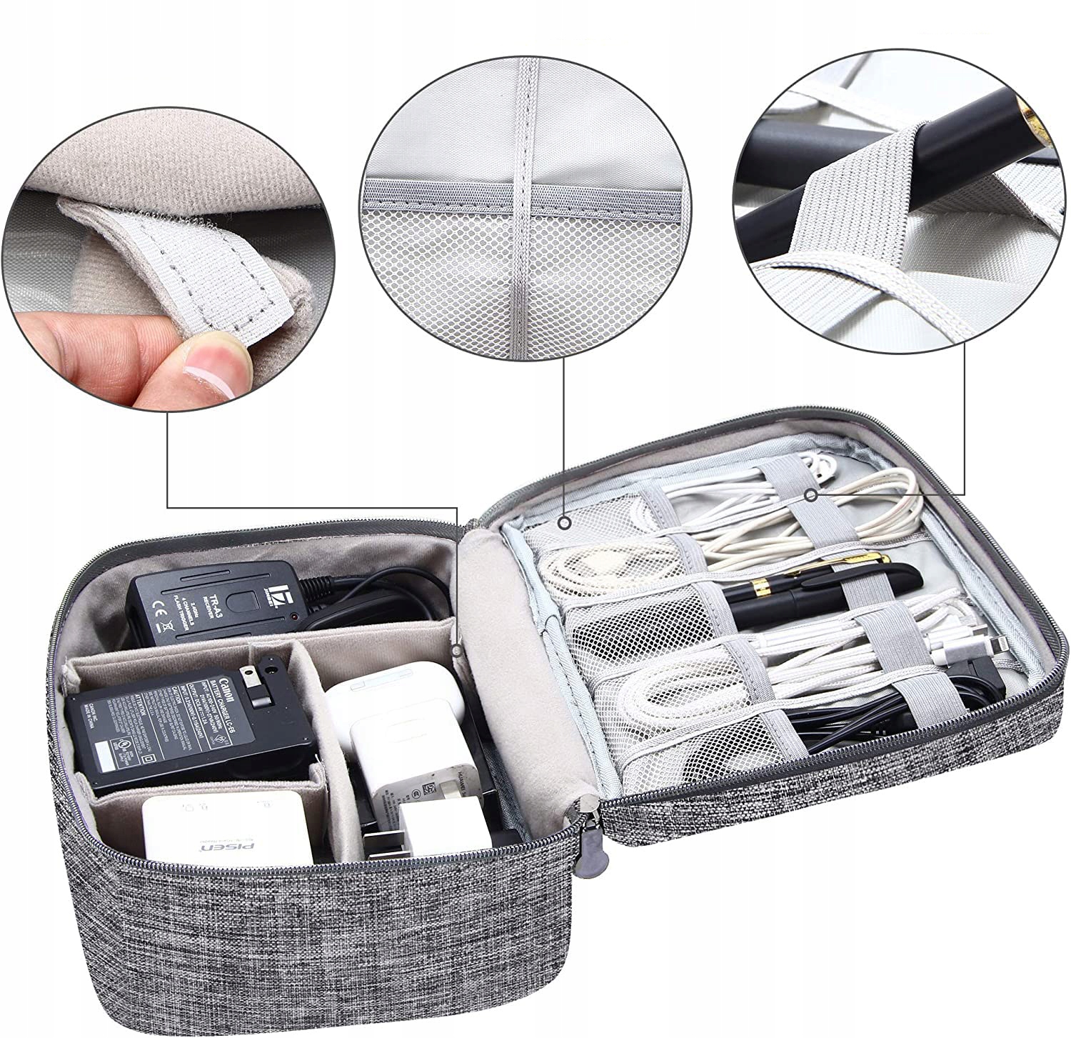 Дорожный органайзер является идеальным решением для всех, кто путешествует с множеством кабелей, адаптеров и других мелких аксессуаров.