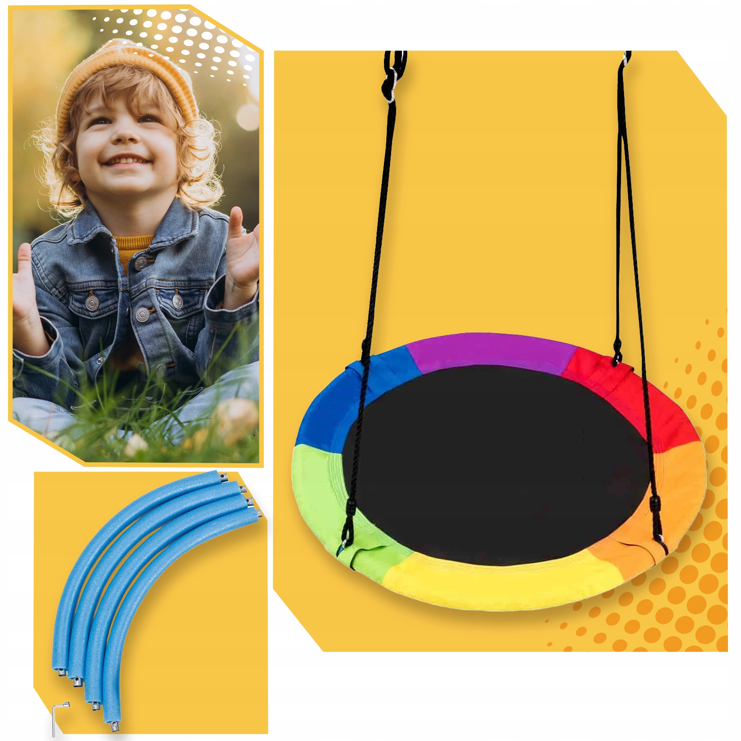 Наш качание сделано из долговечных и долговечных материалов, благодаря которого обеспечивает стабильность и может выдерживать вес до 60 кг .