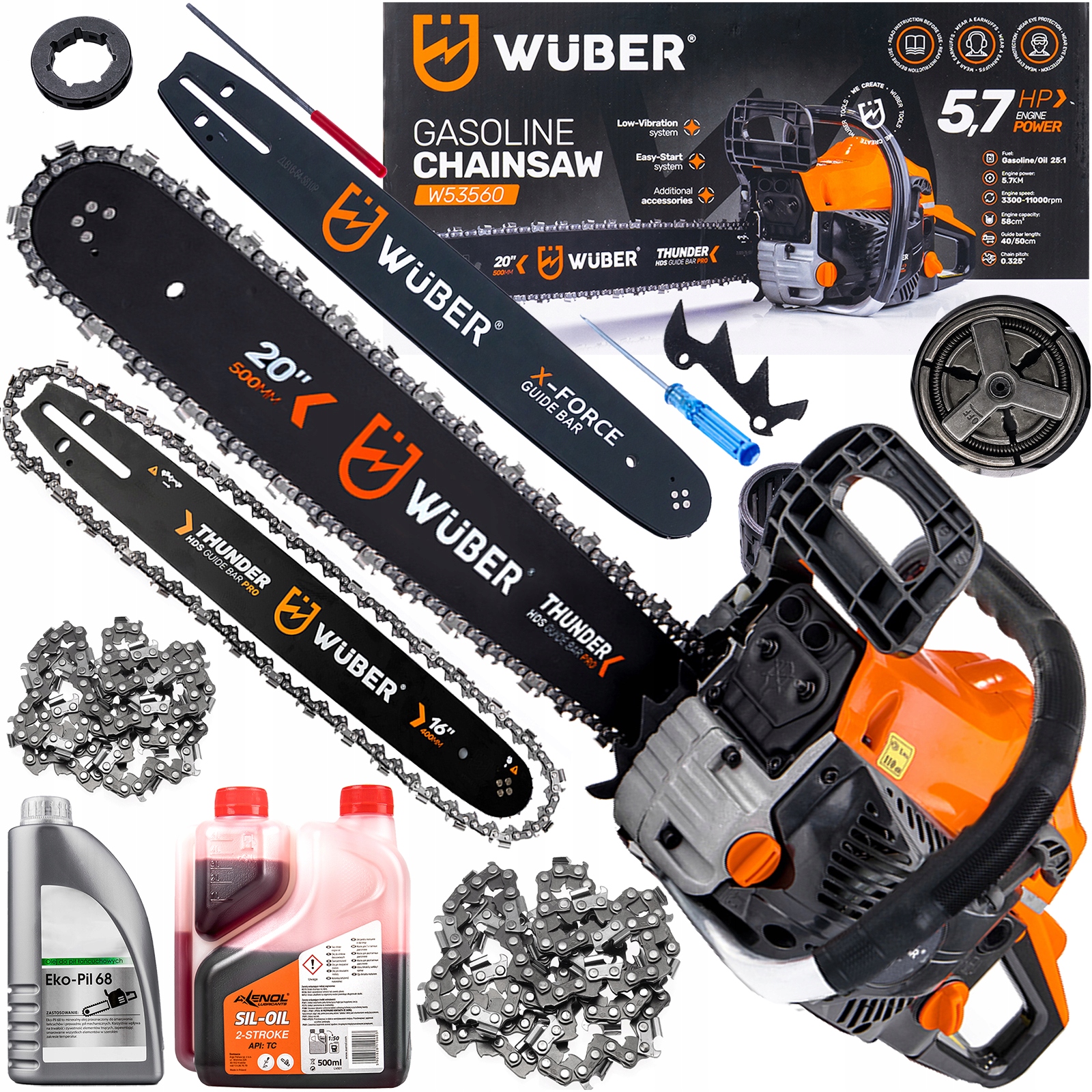 МІЦНА ПИЛКА ВНУТРІШНЬОГО ЗГОРЯННЯ ДЛЯ САДУ 5,7КМ 2XЛАНЦЮГ НАПРЯМНІ + МАСЛО Бонус