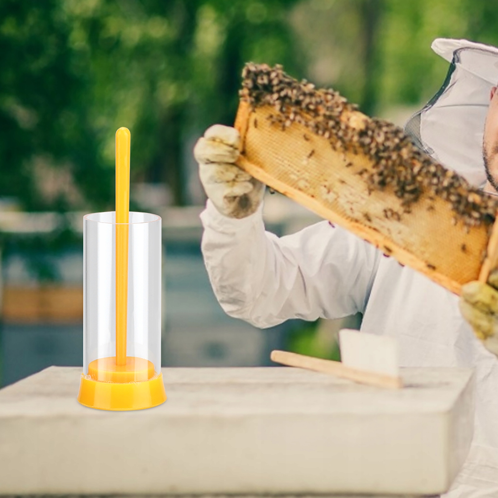 2 Когда пчелиная королева находится внутри, осторожно толкайте поршень вниз к нижней сетке. Губка, а затем поместите пчелу королевы в бутылку и толкните губку вниз. использовать.