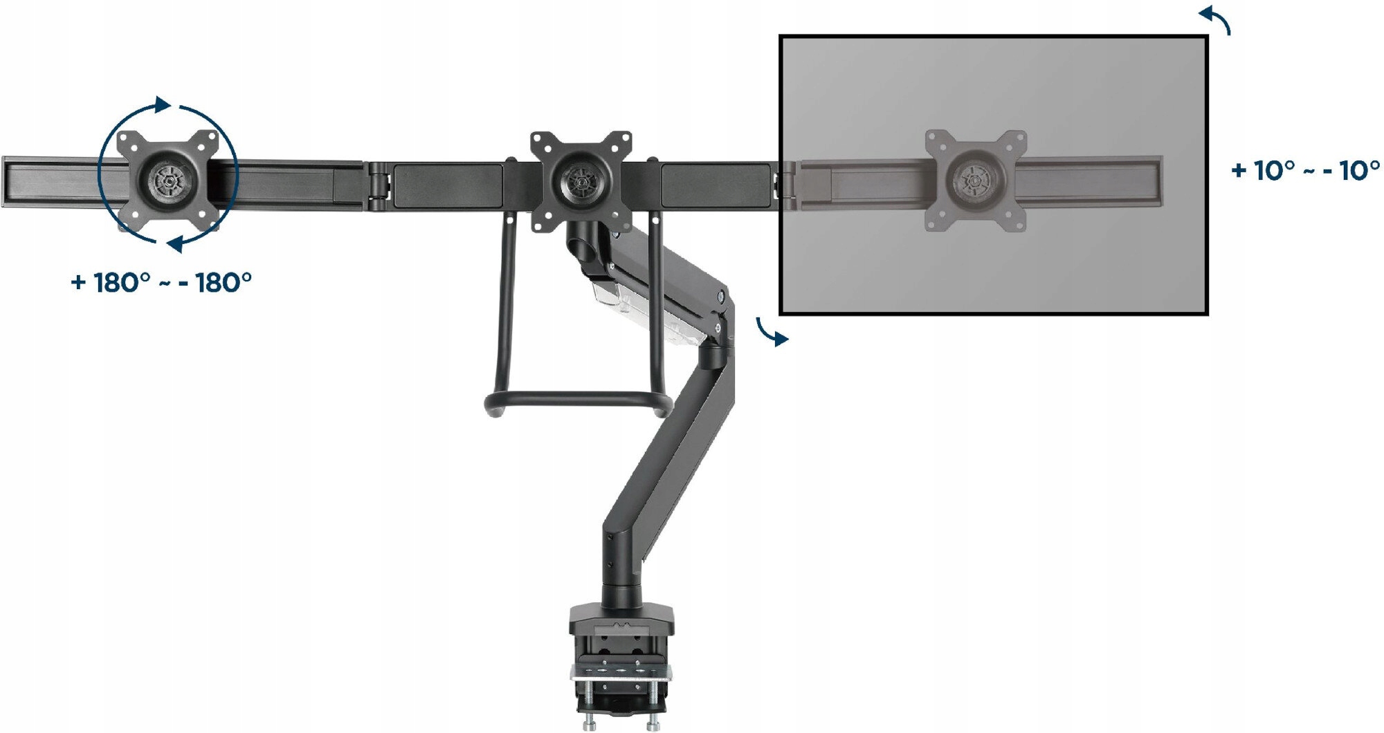 МІЦНА РУЧКА, ЩО ОБЕРТАЄТЬСЯ, 3 МОНІТОРИ, регульований стіл 17-32" до 7 кг