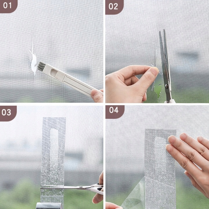 Лента для ремонта москитной сетки можно использовать для ремонта мелких или серьезных повреждений, таких как разрывы, дыры или ослабленные швы на москитной сетке.