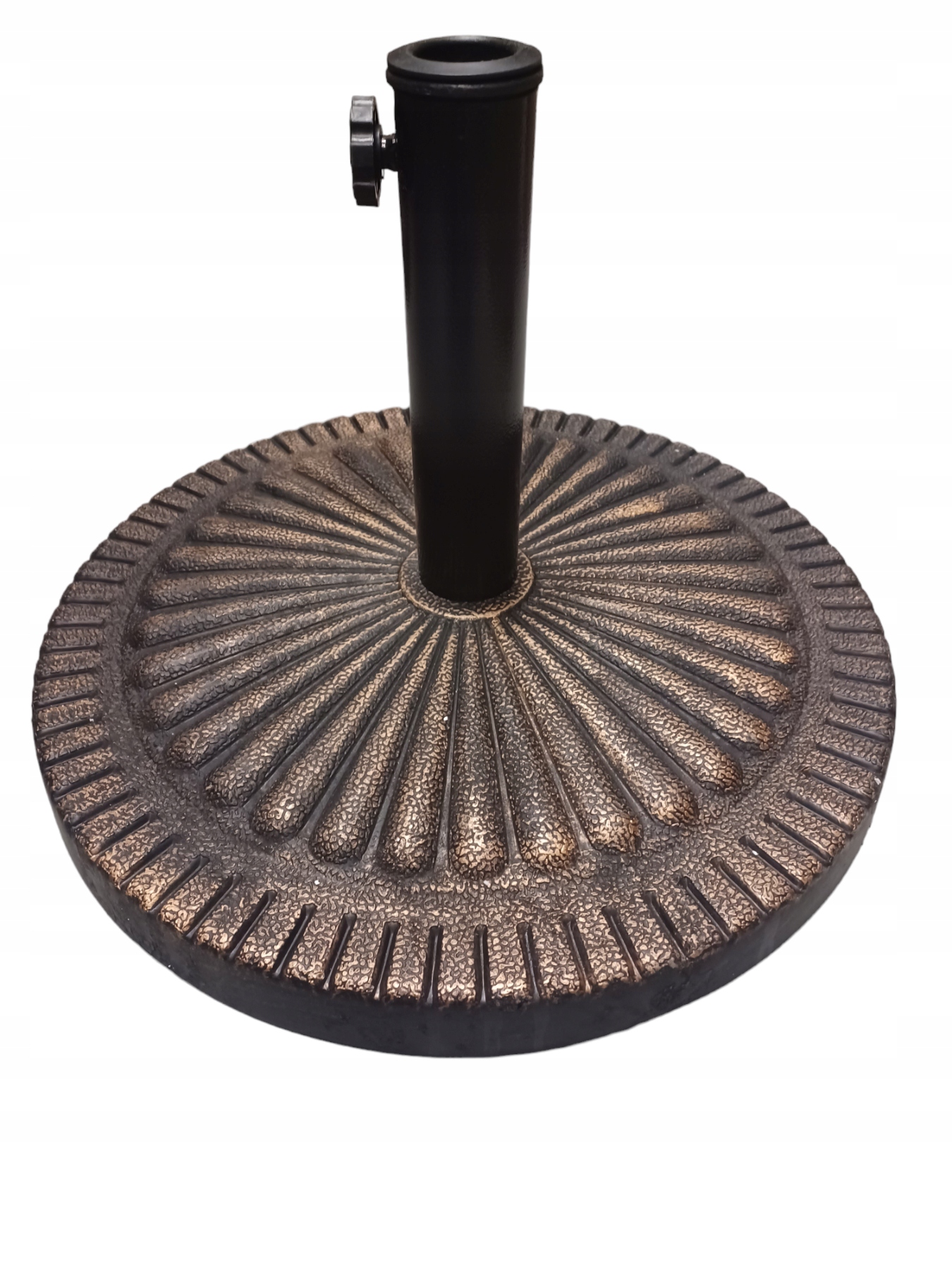 Благодаря массивному круглому основанию диаметром 49 см и железной опоре основание обеспечивает надежную поддержку даже для больших зонтов. Кроме того, противоскользящая конструкция нижней части предотвращает скольжение по различным поверхностям - независимо от того, трава ли это, бетон или деревянная терраса.
