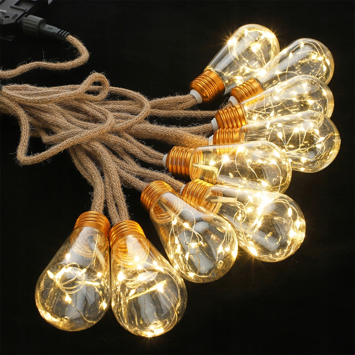Светодиодные гирлянды на солнечных батареях, пеньковая веревка длиной 7,8 м, 16 светодиодных ламп теплого белого цвета для открытого сада, пластиковый корпус с теплой светодиодной лентой внутри⭐️⭐️⭐️
