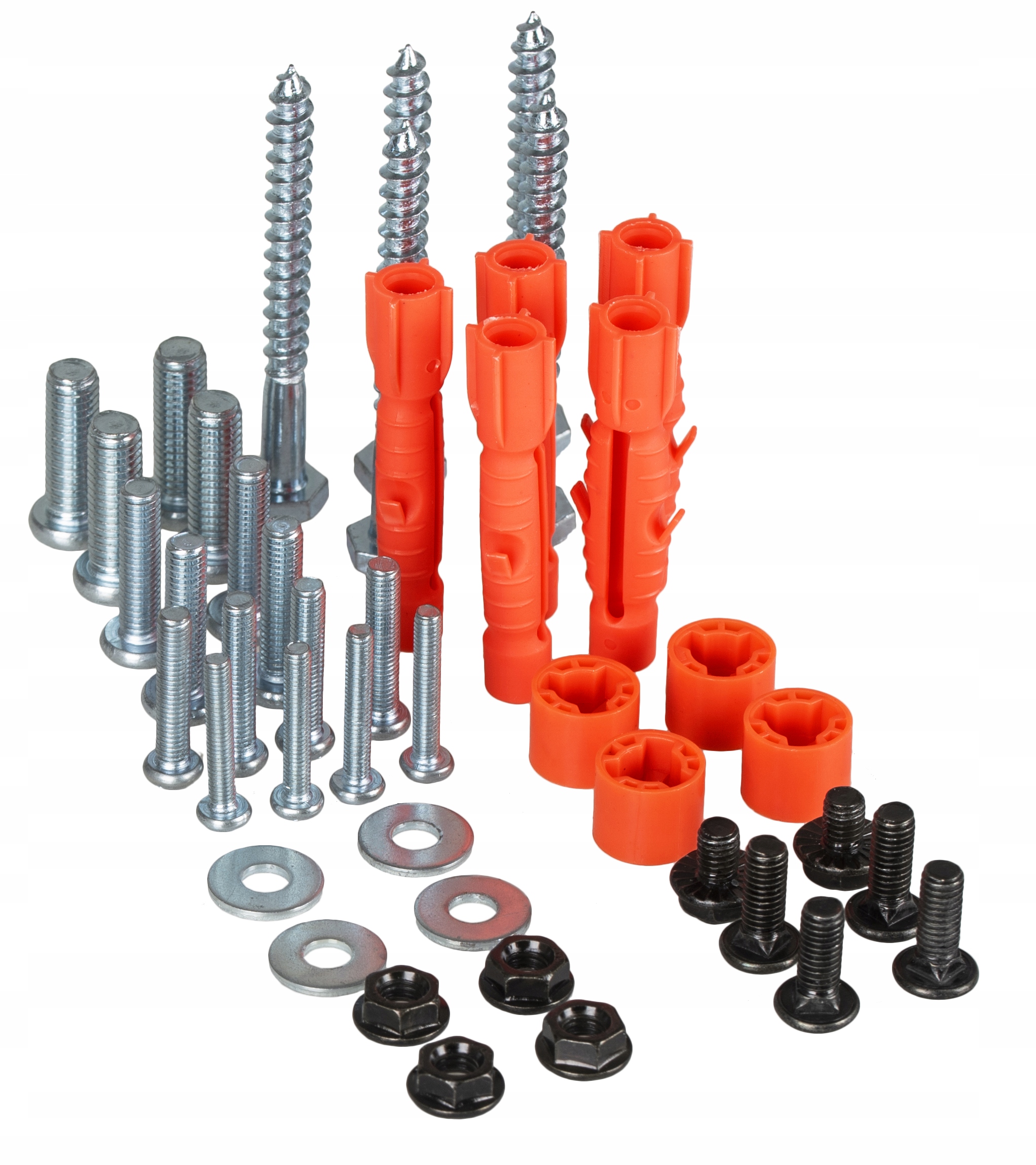 - В комплекте универсальный набор шурупов для крепления телевизора, а также набор шурупов и дюбелей, ватерпас