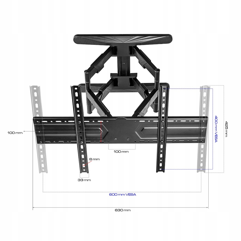 Представленный держатель невероятно прочен и универсален – он имеет плавно регулируемое расстояние между крепежными отверстиями от 100х100ммдо 600х400мм(первое значение - расстояние между горизонтальные отверстия, второе значение — расстояние между вертикальными отверстиями).