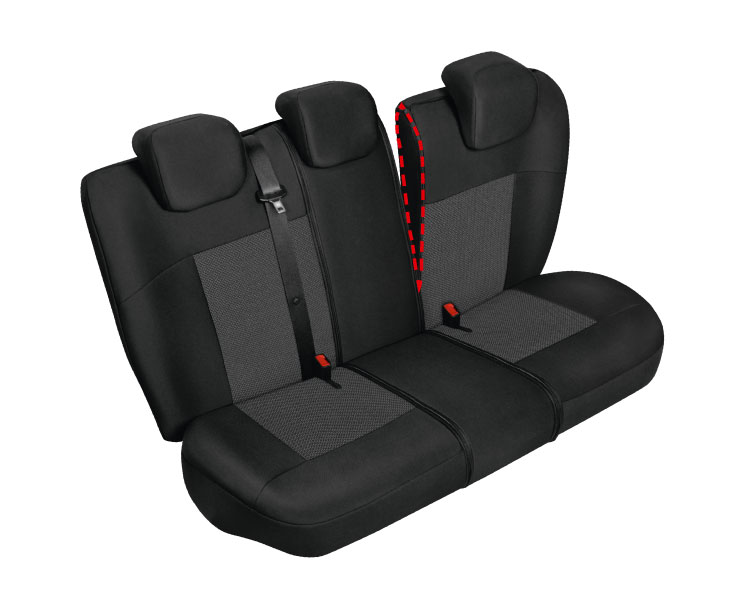 - Сиденье разделяется независимо – система разделения заднего сиденья позволяет сложить его без необходимости отстегивания чехла, окончательно разделить и разложить дополнительный подлокотник. Это происходит за счет дополнительных элементов - боковых чехлов, соединенных с основной частью материала с помощью молний.