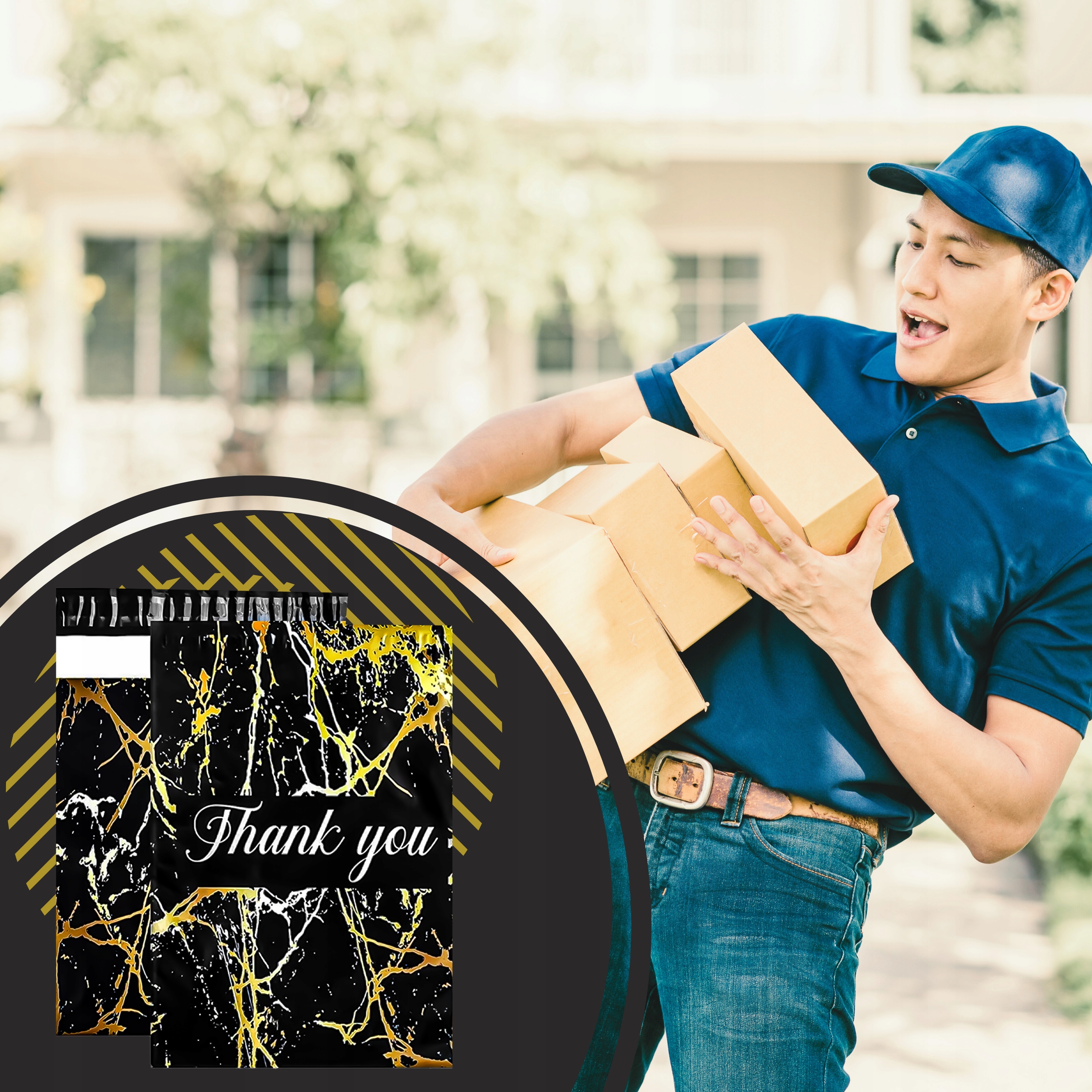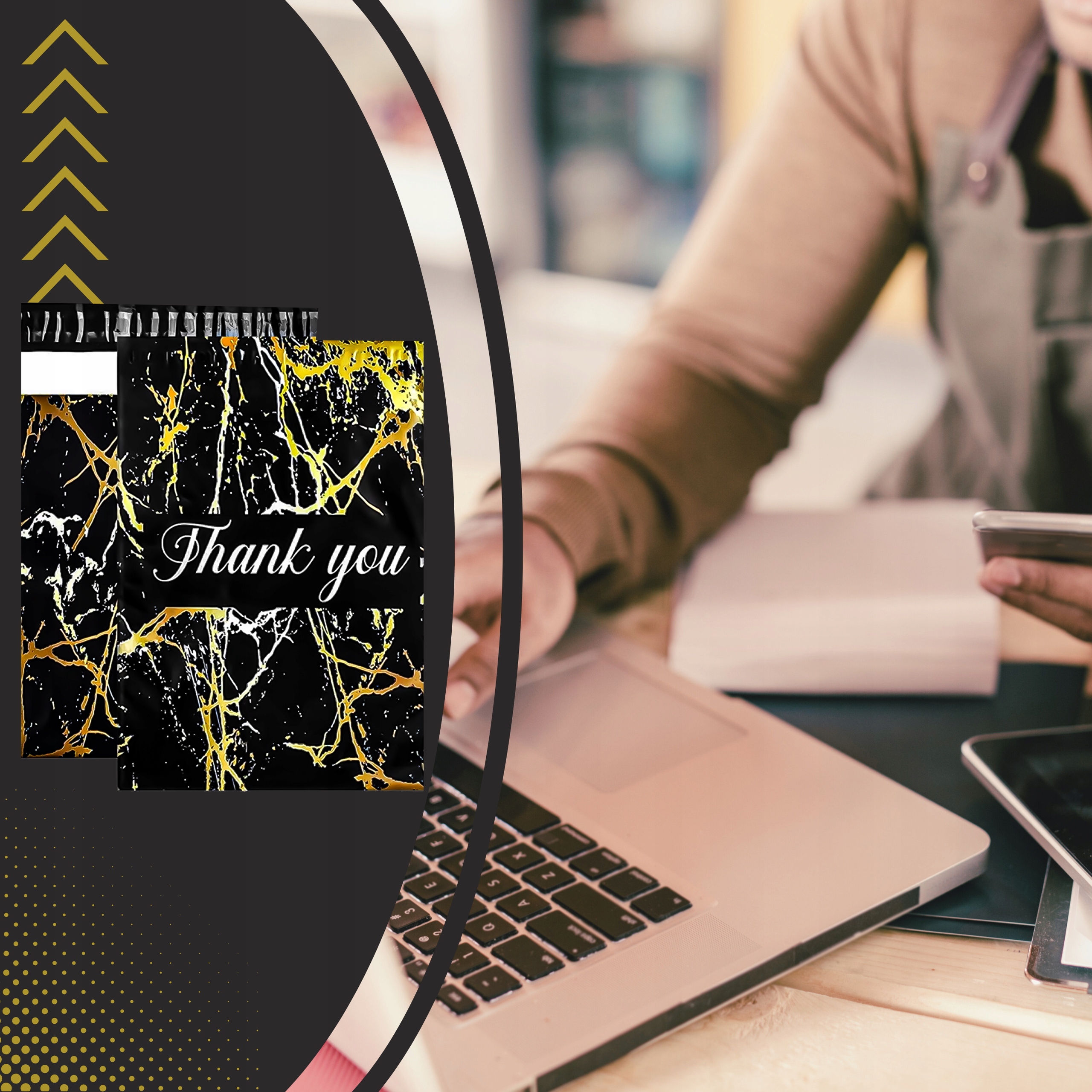 МІЦНІ КУР'ЄРСЬКІ ПАКЕТИ 255X370 ЗОЛОТО МАРМУР ДЯКУЮ 50 ШТ.
