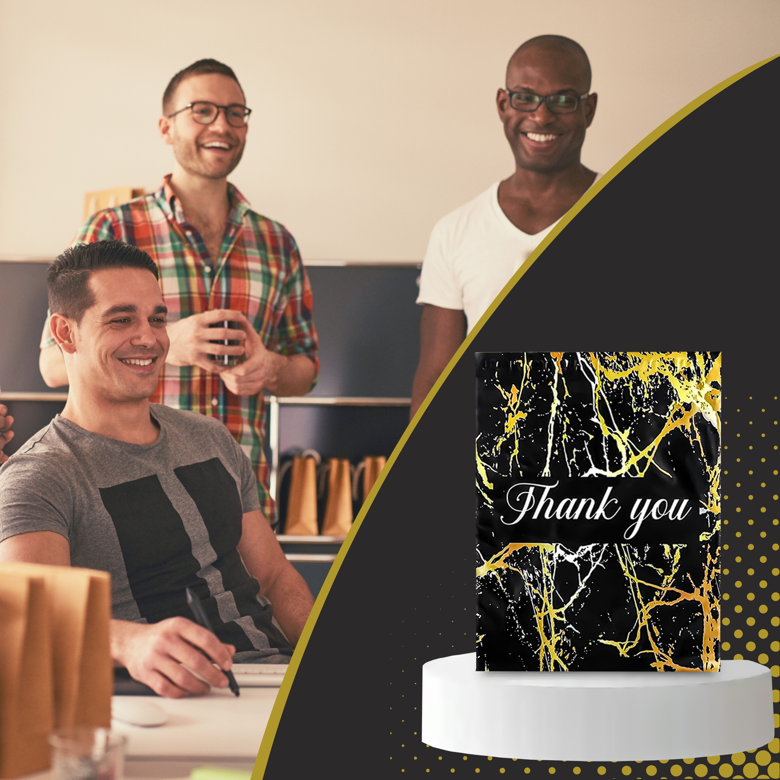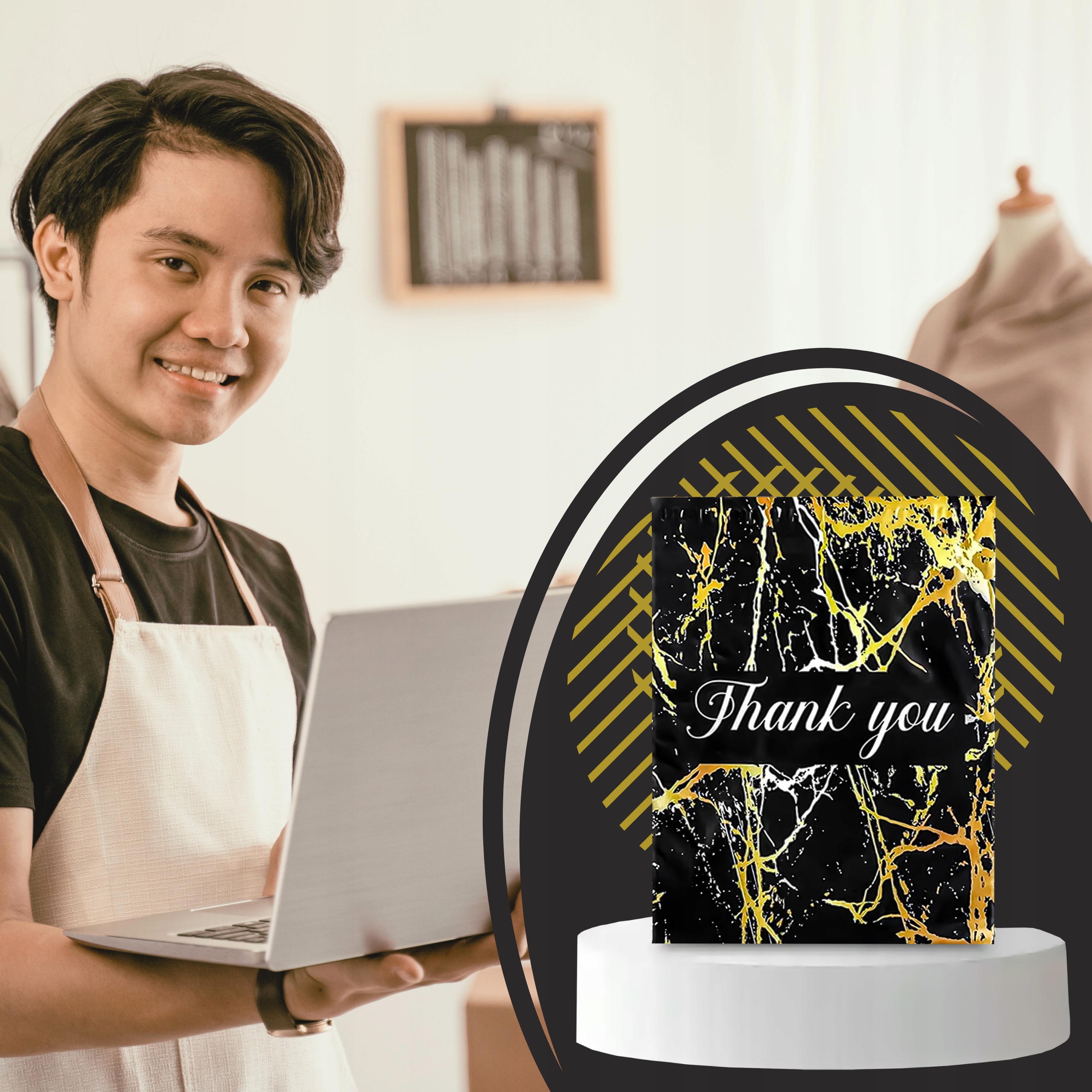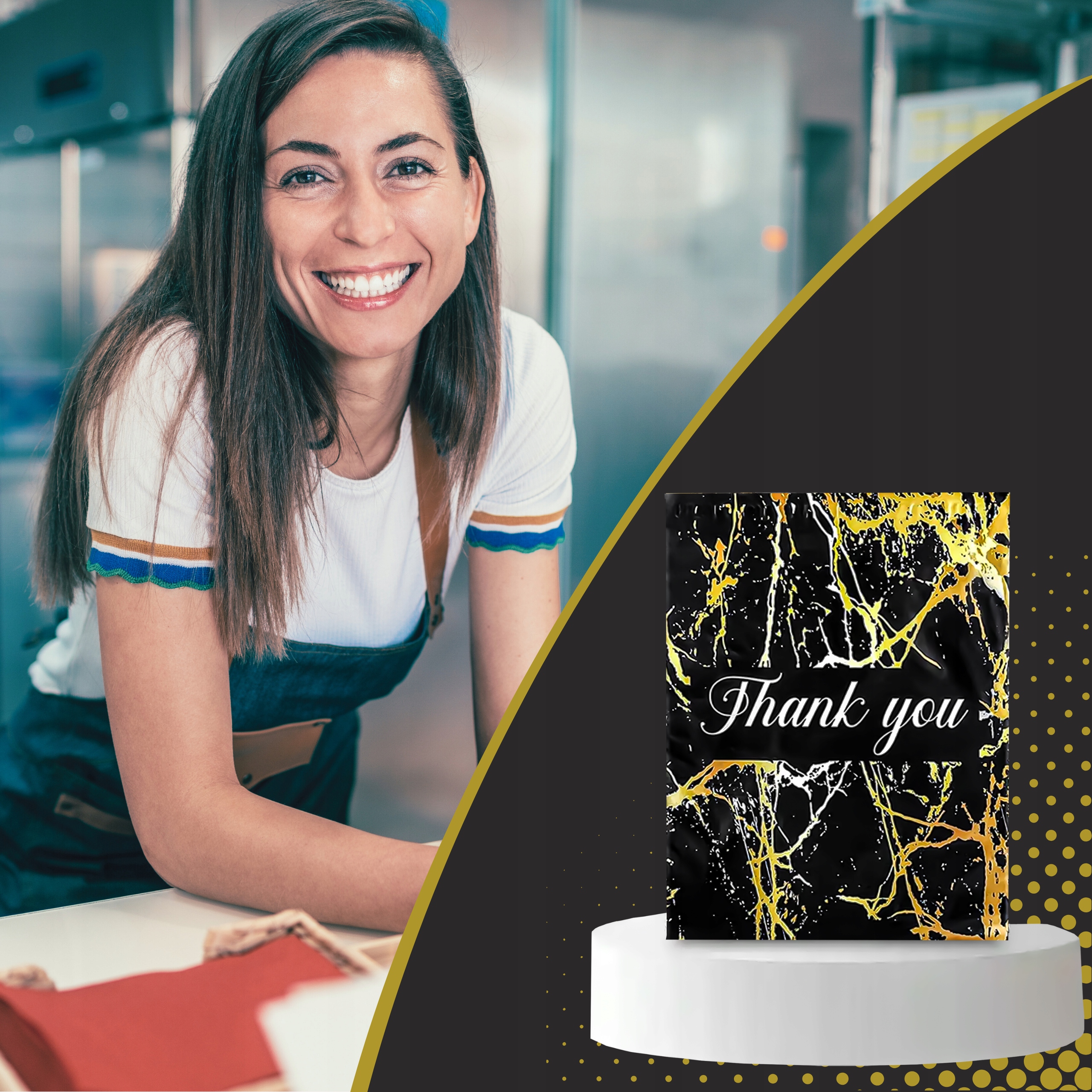 ✅ Цвет/рисунок курьерского пакета из фольги: Черный/золотой с найсами «Спасибо»