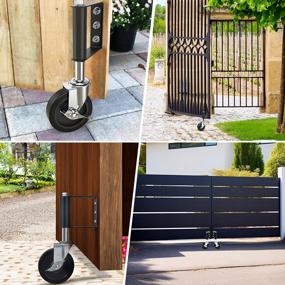 ⭐【Надежная конструкция】: Сочетая утолщенные кронштейны из оцинкованной стали и колесо из высококачественного материала TPR, это колесо для ворот с тормозом может идеально выдержать дверь или забор весом 100 кг. Благодаря шарикоподшипнику можно легко регулировать направление движения.