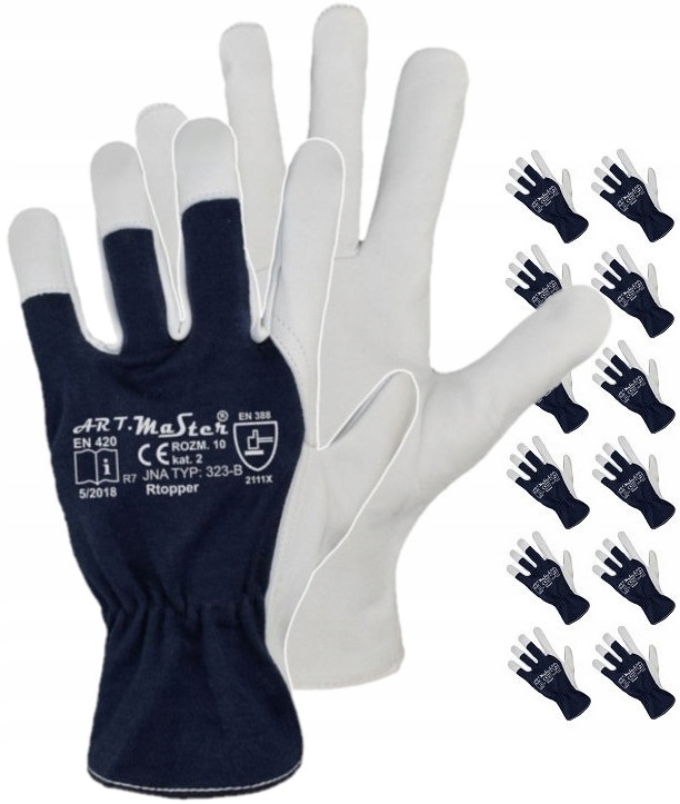 RTOPPER изготовлены из высококачественной очень нежной, мягкой зернистой кожи натурального цвета. Они обеспечивают превосходную ловкость. Захват выполнен из цельного куска кожи, а верхняя часть перчатки - из эластичной хлопчатобумажной ткани темно-синего цвета. Указательный палец бесшовный снаружи. Они идеально подходят для работ, где требуются точность и ловкость.