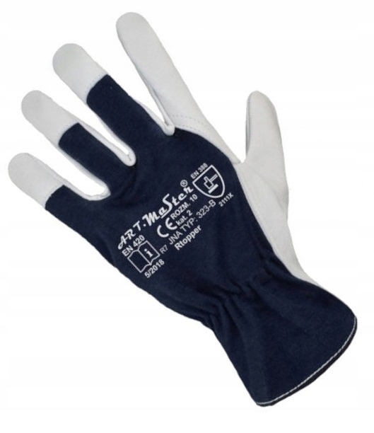 RTOPPER изготовлены из высококачественной очень нежной, мягкой зернистой кожи натурального цвета. Они обеспечивают превосходнуюловкость. Захват выполнен из цельного куска кожи, а верхняя часть перчатки - из эластичной хлопчатобумажной ткани темно-синего цвета. Указательный палец бесшовный снаружи. Они идеально подходят для работ, где требуются точность и ловкость.