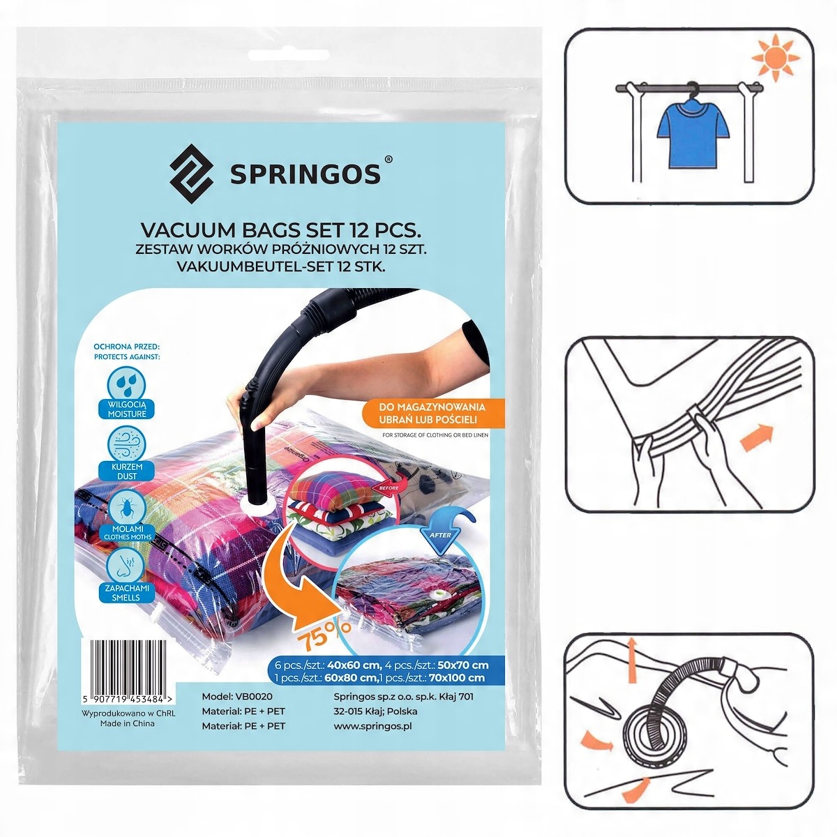 Дома важен каждый сэкономленный сантиметр пространства, точно так же в путешествии вакуумные пакеты Springos это просто великолепно. решение, благодаря которому можно сэкономить 75% пространства за счет выкачивания из них воздуха. Вы экономите место