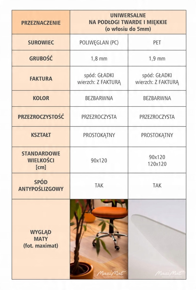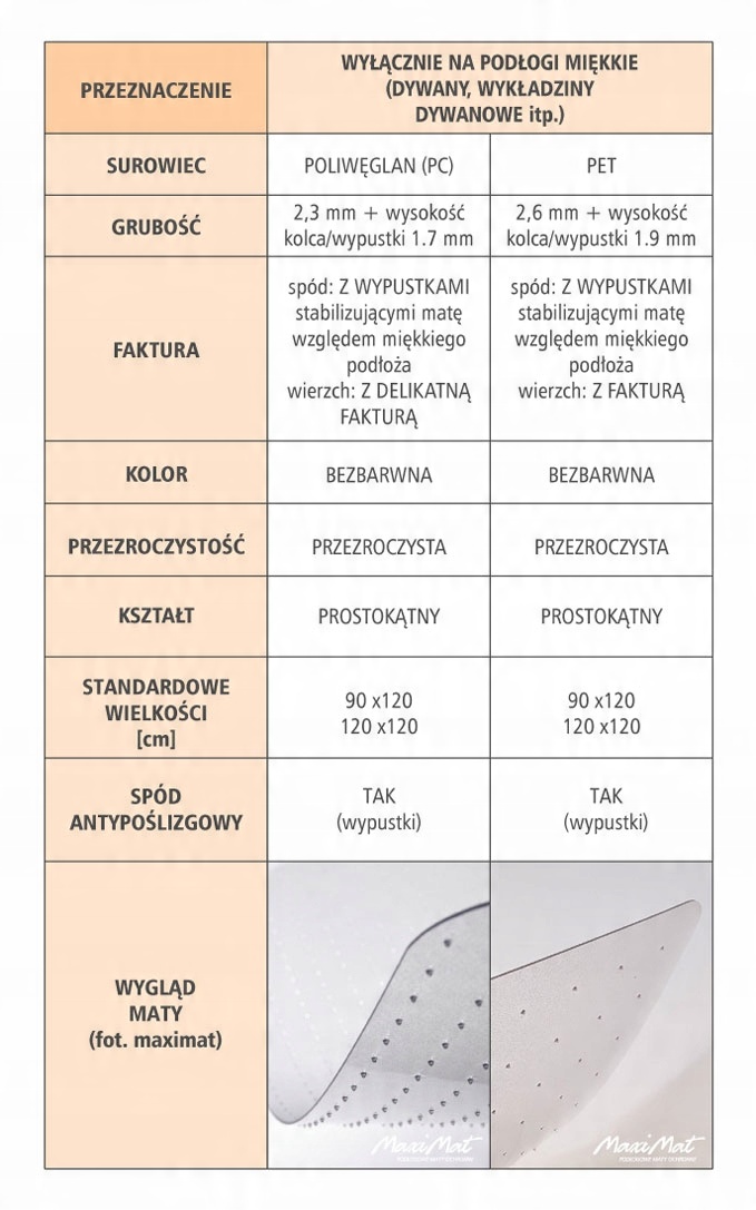 Ниже приведено сравнение всех типов ковриков для стульев, которые мы предлагаем:
