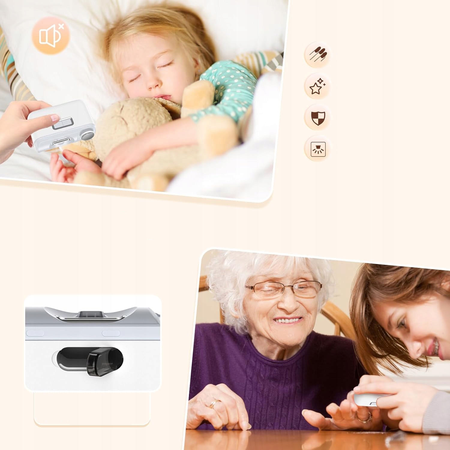 - Благодаря низкому уровню шума в 40 децибел вы можете спокойно стричь ногти.