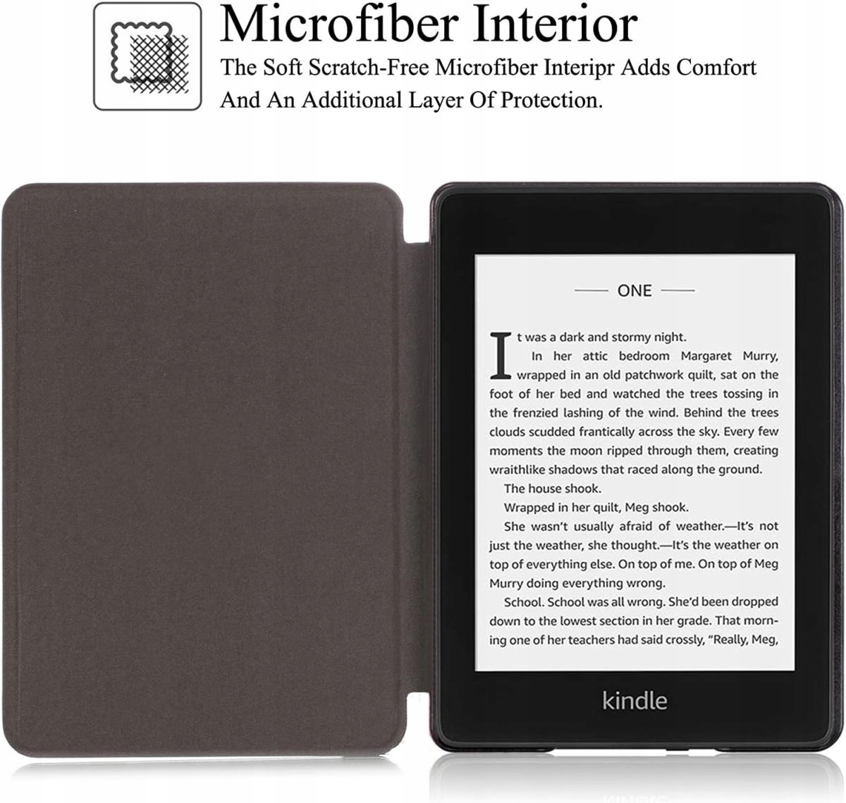Защитный корпус для чтения книги Amazon Kindle Paperwhite 4 (2018) . Это классический, проверенный долговечный блокировка . Таким образом, вы можете навсегда хлопать читателю в пластиковую ванну и закрыть магнитную упаковку . Упаковка предлагает вырезы для всех элементов управления (кнопка освобождения, разъем, светодиод). Материал pu с отделкой. Корпус изготовлен не из гладкой кожи, но мягко текстурирована. Материал внутренних пластин составляет замши , что делает его дружелюбным для дисплея. Дело имеет функцию автоматического засыпания / пробуждения в зависимости от того, как открыть или закрыть дело. Также для Paperwhite 5 Generation мы предлагаем корпус с логотипом Kindle . Преимущество корпуса - низкий вес, но в то же время твердое изготовление благодаря пластиковой ванне