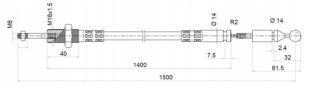 Конец линии от со стороны распределителя: Шток с резьбой М6х1,5 и корпус с резьбой М16х1,5.