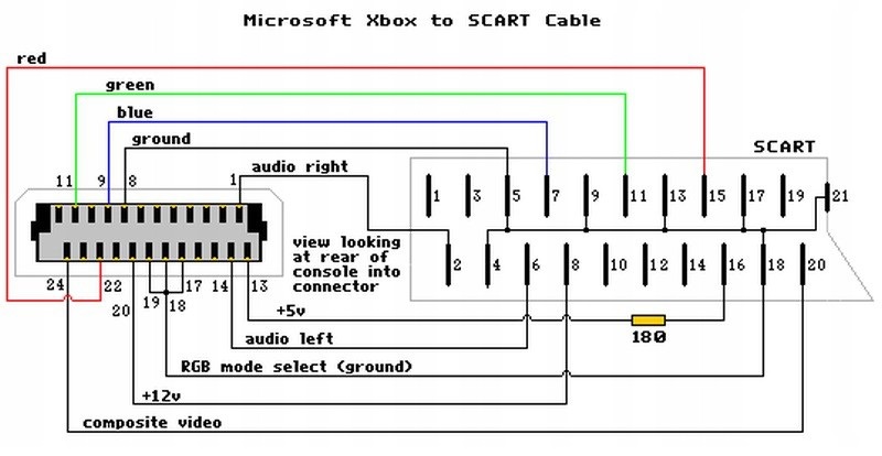 Это не обычный AV-кабель с еврокубом, это RGB-кабель, изготовленный по схеме, приложенной на фото.