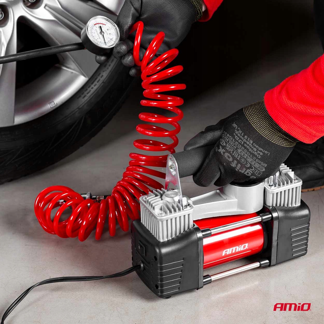 - Компрессор имеет гибкий воздушный шланг длиной до 2 метров! Это делает его простым и комфортным в использовании в любых условиях!
