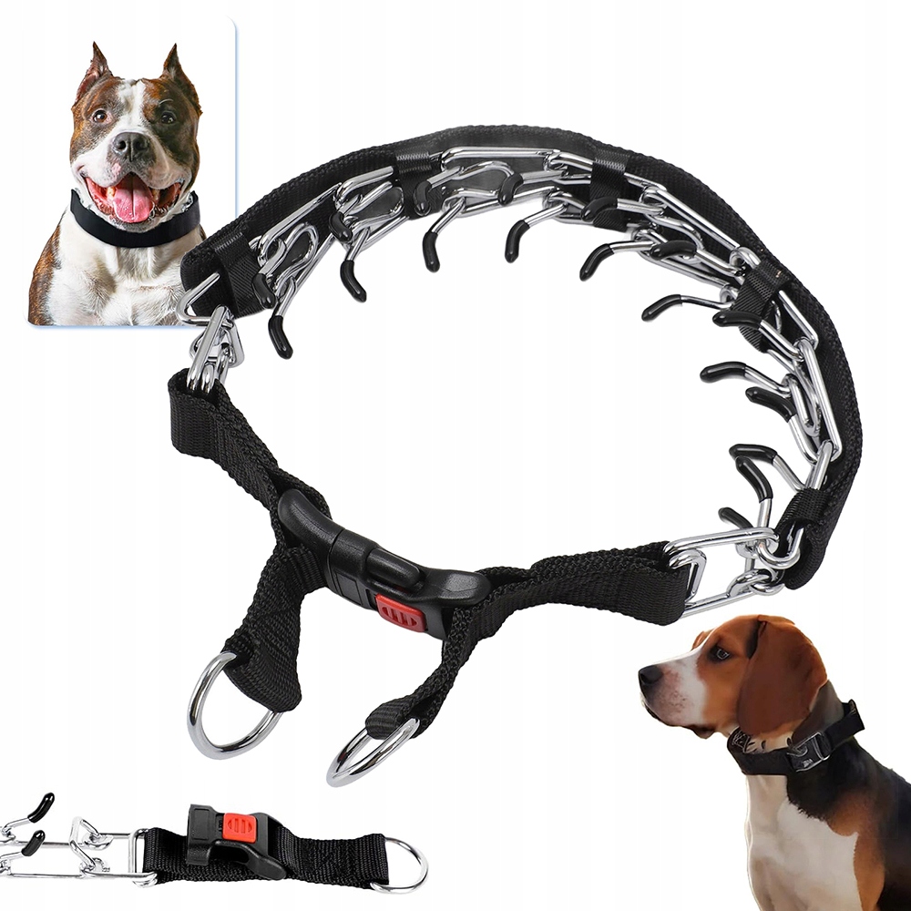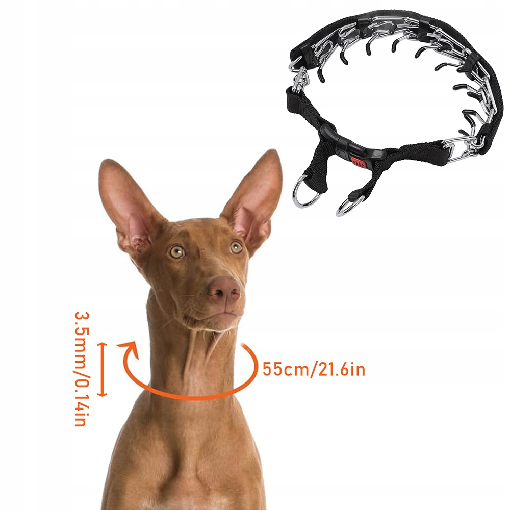 ➡️Ошейник с шипами — безопасная и эффективная альтернатива зажимным ошейникам. В отличие от прижимного ошейника, он просто прижимается к коже вокруг шеи, имитируя эффект давления на шею другой собаки. Этот ошейник для собак не оказывает прямого давления на трахею, что позволяет вам дрессировать собаку, практически не тянув ее, не дергая и не дергая. Он состоит из небольших металлических колец, соединенных вместе, каждое из которых имеет ряд шипов, которые сжимают и сжимают шею собаки при натягивании. Размер этого ошейника можно регулировать, добавляя или удаляя отдельные звенья.