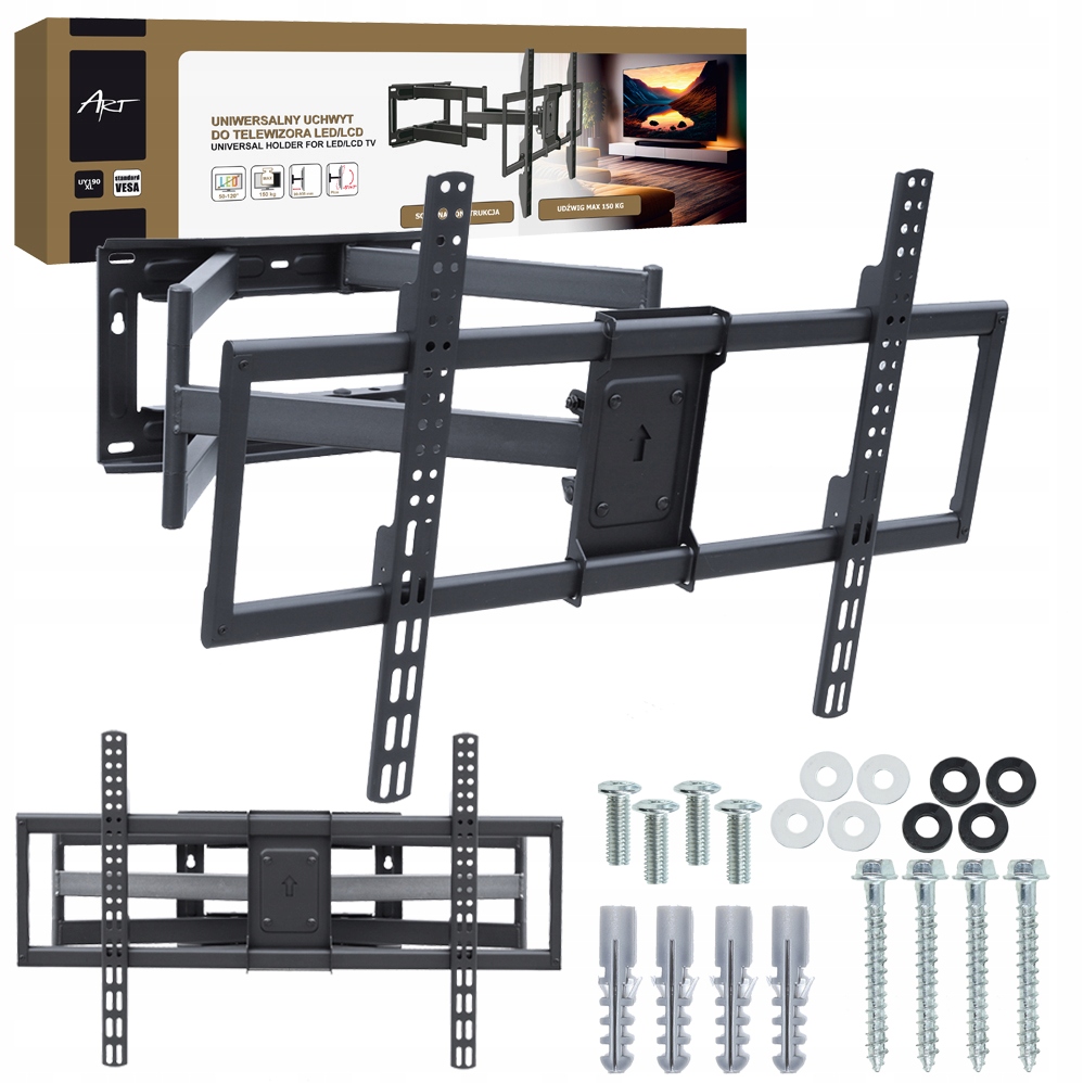 Прочное настенное крепление для телевизора с диагональю 50–120 дюймов ART UY190XL, 150 кг, регулируемое VESA