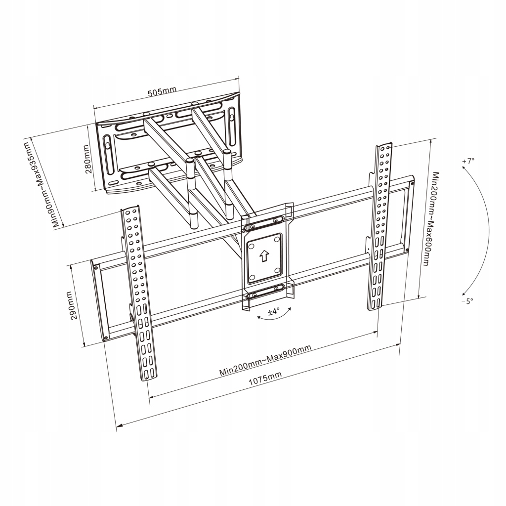 Двойные выдвижные рычаги держателя UY190 ART позволяют поворачивать телевизор на 180°, чтобы экран можно было расположить параллельно стене или под любым углом. Дополнительная регулировка расстояния от стены позволяет точно подогнать положение устройства под вашу комнату.