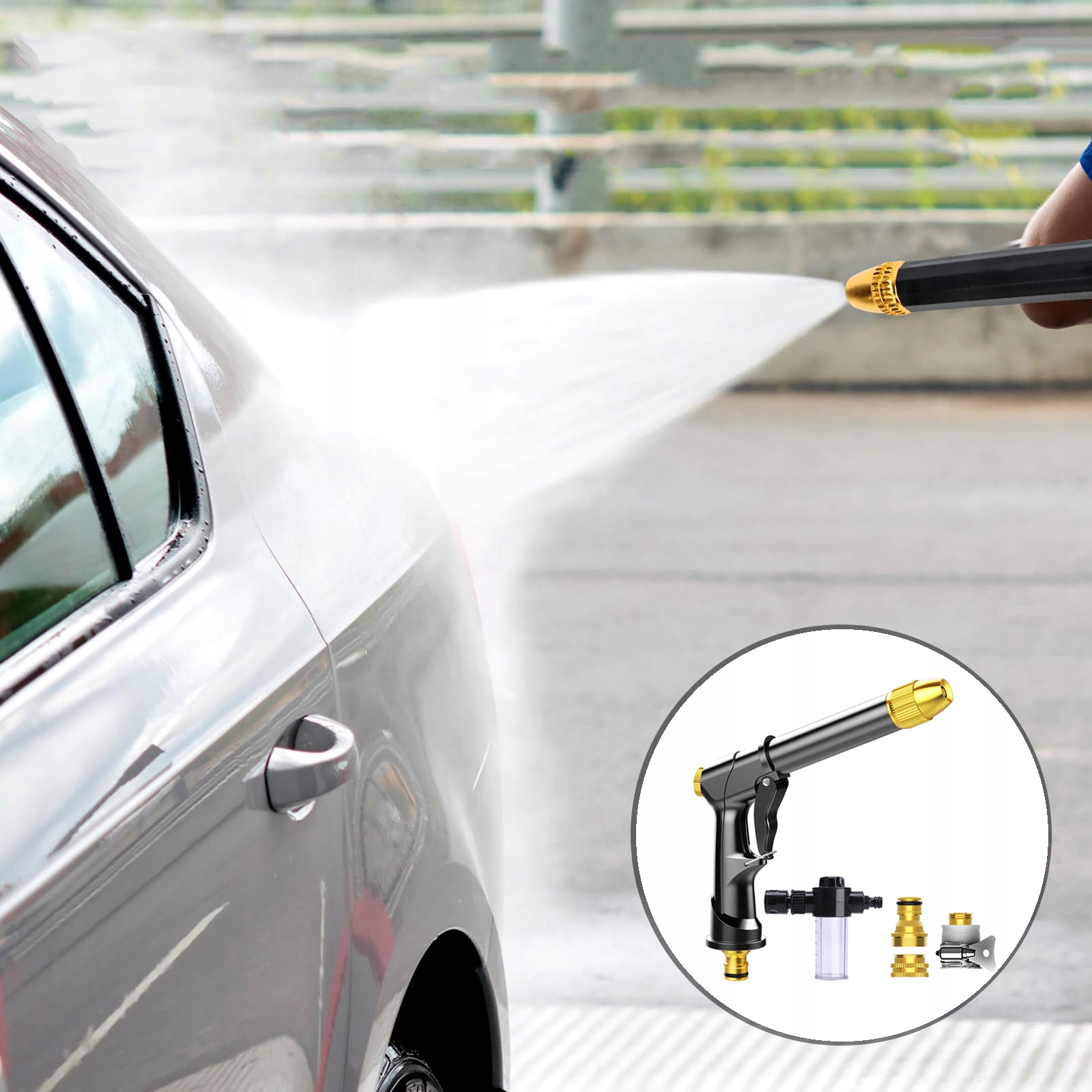 Этот продукт позволяет эффективно и тщательно мыть автомобиль. Благодаря трем разъемам вы сможете распылять воду под разными углами и добираться до труднодоступных мест. Идеально подходит для полива растений, купания домашних животных, мытья окон и других задач по уборке.