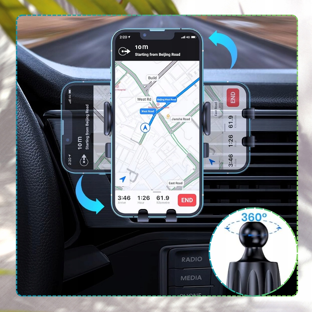 ✅ Держатель имеет функцию вращения на 360°, а это значит, что телефон можно размещать в разных плоскостях, как вертикально, так и горизонтально. Многоточечная регулировка позволяет полностью настроить положение телефона под свои нужды, что повышает комфорт использования во время вождения. Вы можете легко настроить телефон так, чтобы он всегда был у вас на виду, не отвлекая внимания от дороги.